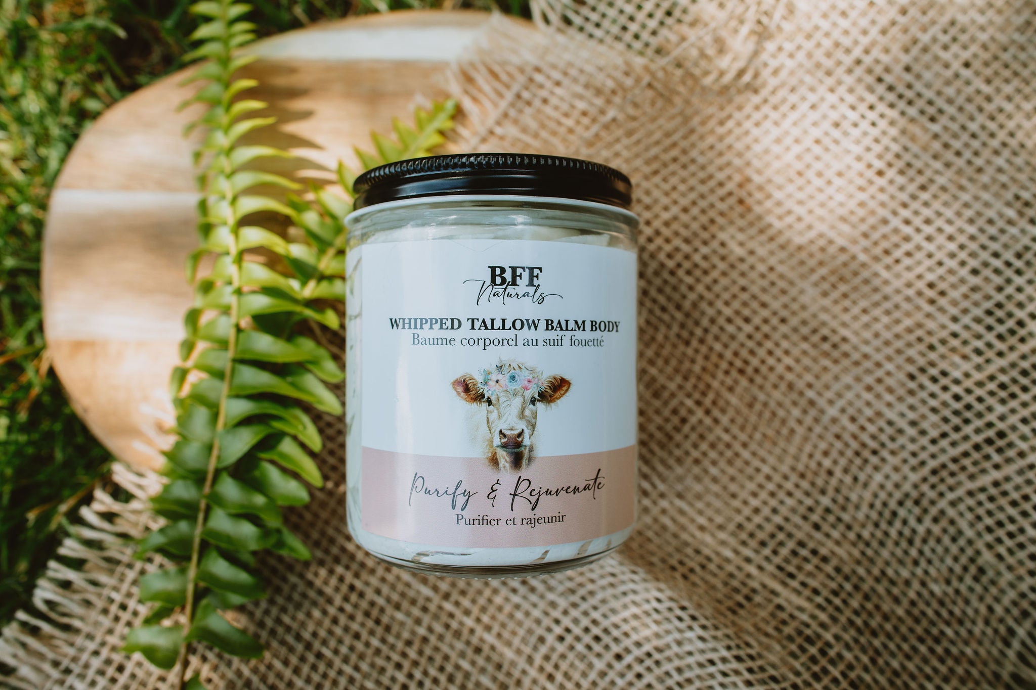 From the heart of Breault Family Farm, we transform grass-fed beef tallow — once an overlooked by-product — into luxurious skincare enriched with organic oils and pure essential oils. Each jar is hand-whipped in small batches for moisture, radiance, and balance you can truly feel.